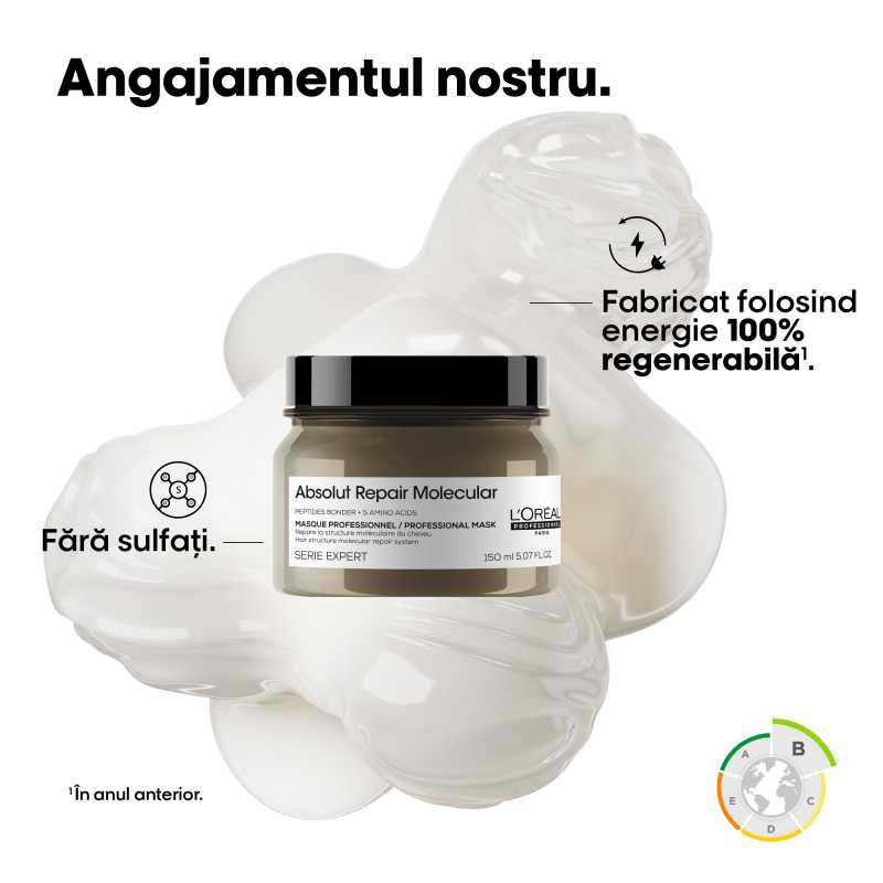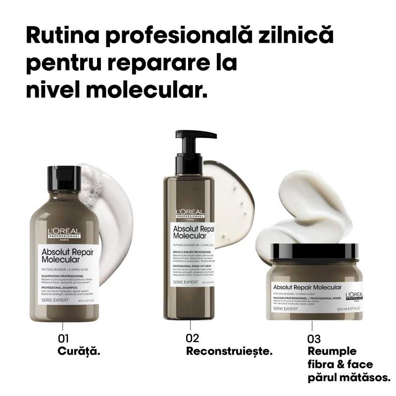Masca concentrata pentru par deteriorat L’Oreal Professionnel Serie Expert Absolut Repair Molecular, formulata cu legaturi peptidice si 5 aminoacizi, ofera netezime, stralucire, par matasos & hidratat, 150 ml
