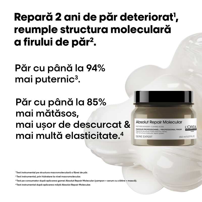 Masca profesionala concentrate Absolut Repair Molecular, repara 2 ani de par deteriorat* si reumple structura moleculara a firului de par. **