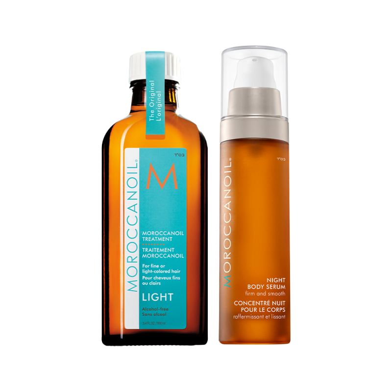Set pentru ingrijirea parului si corpului Moroccanoil Good To Glow DUO Ulei Tratament Light - par fin si de culoare deschisa + Night Body Serum