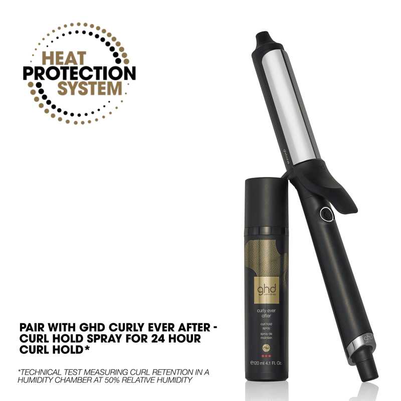 Aplica GHD Curly Ever After Curl Hold Spray inainte de coafare pentru protectie termica si fixare indelungata de pana la 24 de ore*.