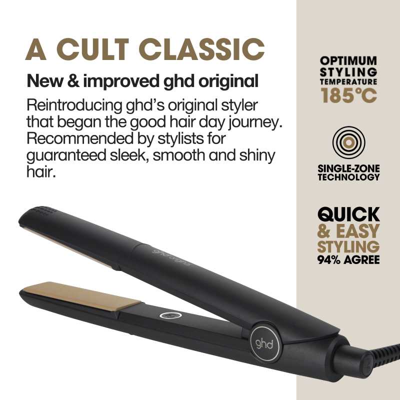Placa profesionala de indreptat si stilizat parul GHD Original Hair Straightener & Styler creeaza coafuri netede si fine pentru styling de zi cu zi. Echipata cu tehnologia imbunatatita Single-Zone™, placa mentine temperatura optima de 185°C pentru rezultate constante, fara expunere la caldura extrema.