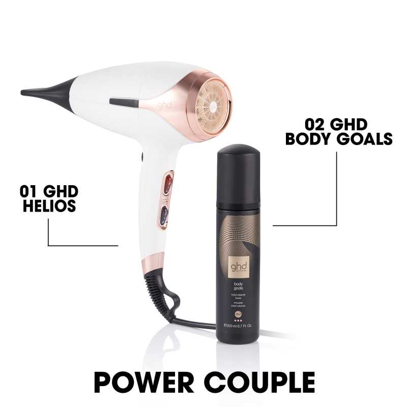 Uscatorul de par GHD Helios ofera control precis si reduce drastic timpul de uscare a parului, pentru rezultate profesionale rapide. Ultra-puternic, ofera cu 30% mai mult luciu (comparativ cu parul uscat natural) si coafare profesionala. Tehnologia Aeroprecis™ si duza speciala directioneaza fluxul de aer pentru un control perfect al styling-ului, pentru rezultate precise, ca la salon. Potrivit pentru toate tipurile de par, inclusiv parul texturat.