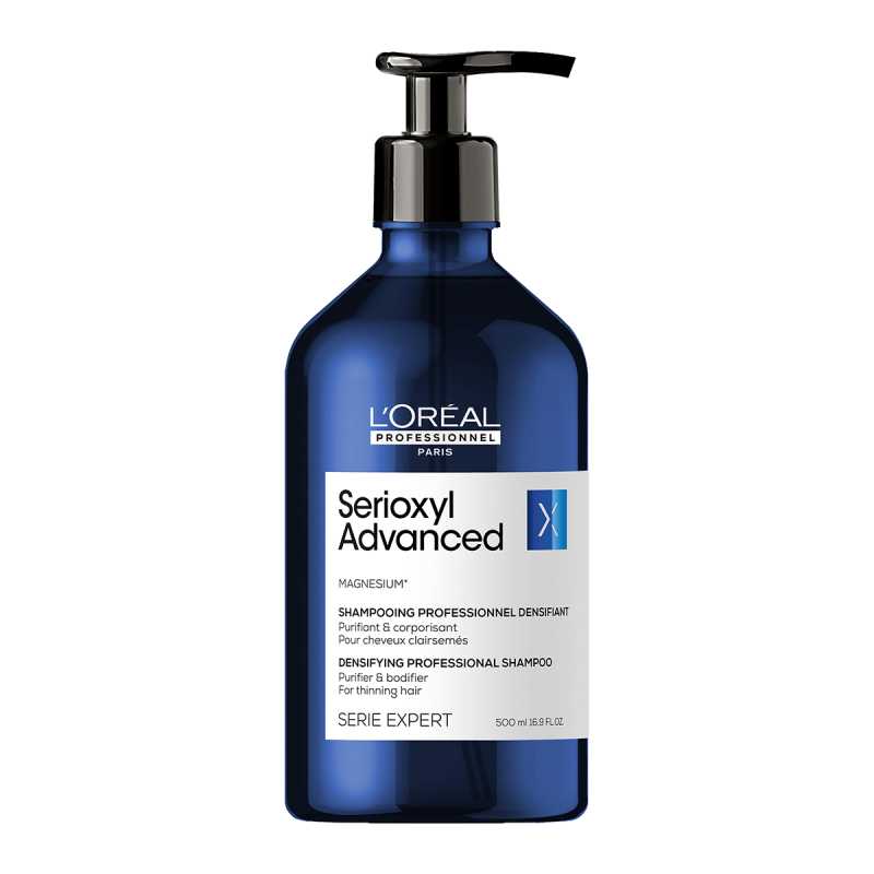 Sampon pentru par L'Oréal Professionnel Serie Expert Serioxyl Advanced, sampon purificator & pentru mai multa densitate, pentru par fin, cu magneziu, aprobat dermatologic, fara siliconi & alcool, 500ml